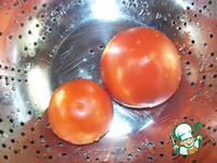 Помидоры обдаем кипятком, снимаем кожицу, нарезаем. |
