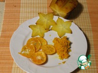 У меня вместо мандарина в десерте кумкват, он вырос у меня на подоконнике, грех не использовать. Мандарин или кумкват и карамболу нарезать пластиками |