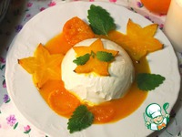 Миску с творожным десертом на несколько секунд опустить в горячую воду, на тарелочку вылить апельсиновый соус и выложить сверху творожный десерт. Украсить листиками мяты |