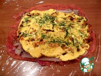 Готовый омлет выкладываем на белую рыбу. |