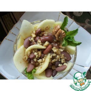 Берем заранее отваренную фасоль. Яблоко чистим, нарезаем тонкими ломтиками. |