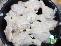 Выкладываем курицу в удобную форму для запекания (курочка получается сочней, если ее уложить плотно-плотно к друг другу). И ставим в духовку минут на 20 при температуре 220 гр. |