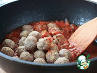 Подержите на огне томатный соус пару минут и всыпьте мясные шарики, потомите их в соусе еще 2 минуты |
