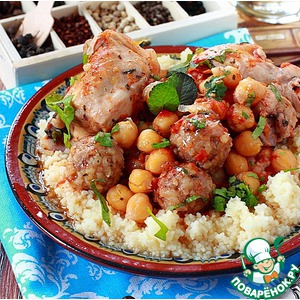 Описание: Курица с нутом и мясными шариками с булгуром в томатном соусе. Это блюдо просто пропитано восточным колоритом - булгур, нут, мята, кинза, вкуснейшие говяжьи фрикадельки с семолиной... ну до чего же приятная компания! Необыкновенно вкусное и, что немаловажно, красивое блюдо. Если вам нужен сытный обед или ужин - этот рецепт то, что надо.
