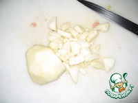С груши удаляем кожу, мелко режим и добавляем к мясу. |