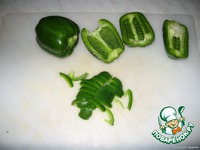 У перца удаляем плодоножку и рубим полукольцами, тушим с луком и морковью 5 минут. |