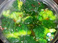 Кочанчики разобрать на соцветия, погрузить в кипящую воду со специями. Варить не больше 5 минут. Я варю три минуты. Бульон процедить и в 200 граммах растворить желатин. |