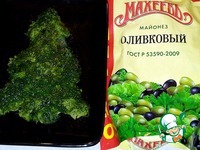 Снежные ёлочки сделаем майонезом "Махеев". |