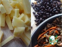 Фасоль и нут замочить с вечера, с утра сварить. На фото видно (я надеюсь на это))), что бобовые (нут и фасоль) ТМ Мистраль. Вообще, не принципиально, какая фасоль, но хочется дополнительных оттенков в супе, поэтому я взяла чёрную. |