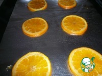 Застилаем противень пекарской бумагой и раскладываем апельсины, мне понадобилось 6 кружков. |