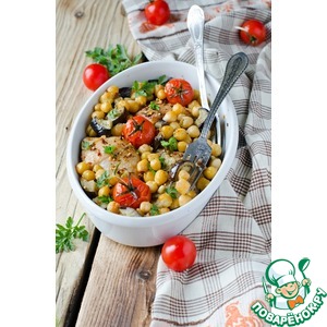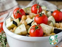 Тушить овощи с нутом на оливковом масле в течение 10 минут. Выложить их к мясу и запекать еще 5 минут. Можно подавать к столу. Приятного аппетита!!! |