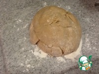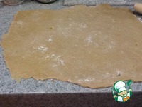Раскатайте шарик в пласт толщиной 5 мм, посыпая скалку мукой, если тесто начинает липнуть. |