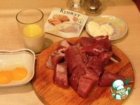 Вырезку нарезать на небольшие кусочки. Молоко с маслом подогреть в микроволновке, должно быть тёплое. Желтки отделить от белков. |
