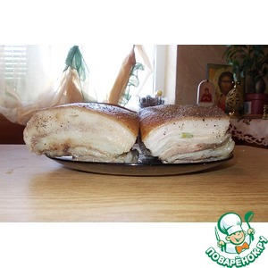 После окончания варки вынимаем из пакета и даем остыть. Натираем давленым чесноком и посыпаем свежемолотым перцем. Заворачиваем в фольгу и кладем в холодильник. Через пару часов можно есть. |