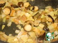 На сковороде поджарить лук, добавить грибы. Жарить около 5 минут. |