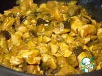 Добавить мелко нарезанное филе, посыпать карри (около 1 чайной ложки), добавить соевый соус по вкусу. Жарить под крышкой, чтобы начинка успела приготовиться и оставалась сочной. Оставить остужаться. |