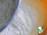 Отдельно смешайте муку и разрыхлитель. Просейте в основную массу. Перемешайте миксером до однородности. |