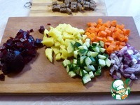 Описание: Очень яркий и вкусный винегрет, на столе выглядит очень празднично. Все без исключения захотят попробовать это блюдо. Угощайтесь!!!