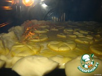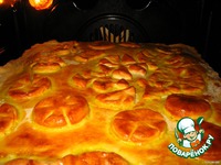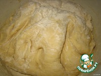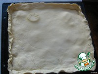 когда тесто подойдет второй раз, раскатываем его и выкладываем на смазанный маслом противень... |