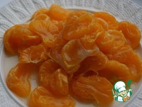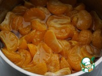 Через 5 минут мандарины выловить шумовкой и выложить на блюдо для остывания. Сироп пока отставим в сторону, он нам еще пригодится. |