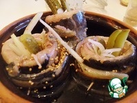 Наши рулеты складываем в глубокую мисочку (лучше глиняную) и заливаем остывшим маринадом. Убираем в холод как минимум на 6-7 часов, но лучше всего на 2-3 дня! |