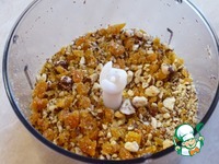 Добавить в массу перемолотые орехи с курагой, муку и замесить тесто. |