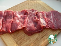 Разрезаем мясо приблизительно в 0,7-1 см толщиной, получается вот такой пласт. |