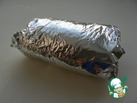 Сворачиваем рулет и упаковываем в эту же фольгу. Можно ещё дополнительно обернуть фольгой. |
