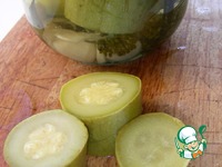 Предварительно подготавливаем маринованные кабачки (можно использовать патиссоны), нарезаем соломкой. |