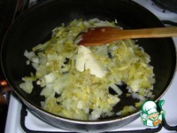 Добавляем кабачки в лук со столовой ложкой сливочного масла. Немного тушим на маленьком огне. |