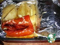 Приблизительно через 40-50 мин вынимаем картофель и перец, а мясо продолжаем готовить. Полностью мясо готовиться 1,5 часа. |