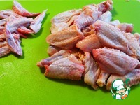 Крылышки необходимо промыть, порезать по суставам. Кончики крылышек я не использую (диетологи говорят, что в кончиках крыльев самое большое содержание холестерина), по желанию можно и их зажарить. |