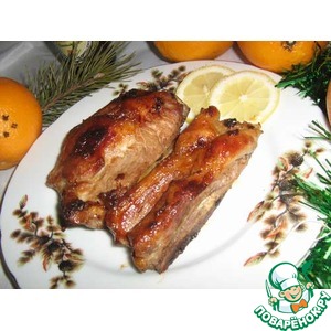 Как пройдет время, положить ребра на противень и полить немного глазурью. Поставить в предварительно разогретую духовку до 200 градусов на 40 минут. |