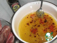 Приготовить глазурь: налить апельсиновый сок, добавить сахар, соль, мед, кетчуп, горчицу, соевый соус, растительное масло и красный жгучий перец |