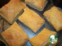 Тесто нарезаем на прямоугольники. Тесто должно начать чуть-чуть подтаивать, резать в таком состоянии. Ставим в духовку и только потом ее включаем на 180 градусов. Печем 25 минут. |