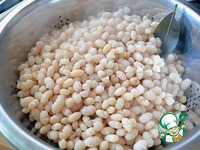 Набухшую фасоль промойте, переложите в кастрюлю, добавьте 1 литр воды, лавровый лист и щепотку соли. Варите фасоль до мягкости не менее часа. |