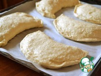 Сформируйте кальцоне в виде полумесяца, прижав края теста. |