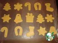 Вырезать фигурки (если будете ими украшать елку, то необходимо сделать отверстия для ленточек) и выложить на покрытый пекарской бумагой противень. |