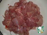 Курицу нарезаем кубиками. Я брала бедро, но если облегчить работу, то можно взять филе. |