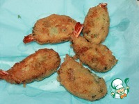 Креветки завернуть в ароматное картофельное пюре, оставив только хвостик |