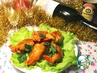 Выложить креветки в шубке на салатные листы и сразу же подавать с пылу, с жару. Очень хорошо с белым сухим вином. |