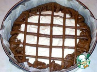 Края - бортики завернула. Из остатка теста раскатала полоски и разложила в виде решетки сверху. |