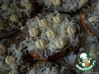 На паштет выложить тертый сыр и масло. Масло очень размягченное, я выдавила из корнетика. |