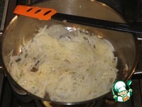В сотейник выложить лук и жарить, помешивая, на среднем огне около 5 минут. |