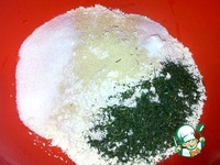 Муку просеяла в миску. Всыпала сухие дрожжи, сахар, соль, укроп. |
