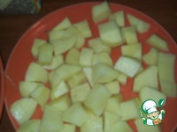 Берем картофель, штуки три. Порезав, в суп его клади. |