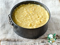 Форму для выпечки застелить фольгой или пергаментной бумагой. Вылить тесто. У меня форма диаметром 12 см, пирога таких получилось два. |