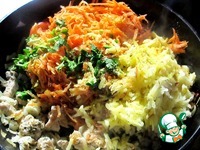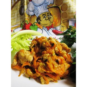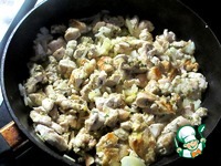 Куриное филе нарезать небольшими кусочками, как на бефстроганов. Посолить, добавить специи. Слегка обжарить на сковороде с толстым дном. |