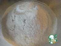 Просеиваем пшеничную и ржаную муку, добавляем к ним разрыхлитель теста, хорошо перемешиваем. |