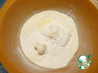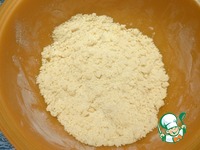 Сначала готовлю песочное тесто для пирога. В миску просеиваю муку, добавляю размягченное сливочное масло, просеянную сахарную пудру, соль. |